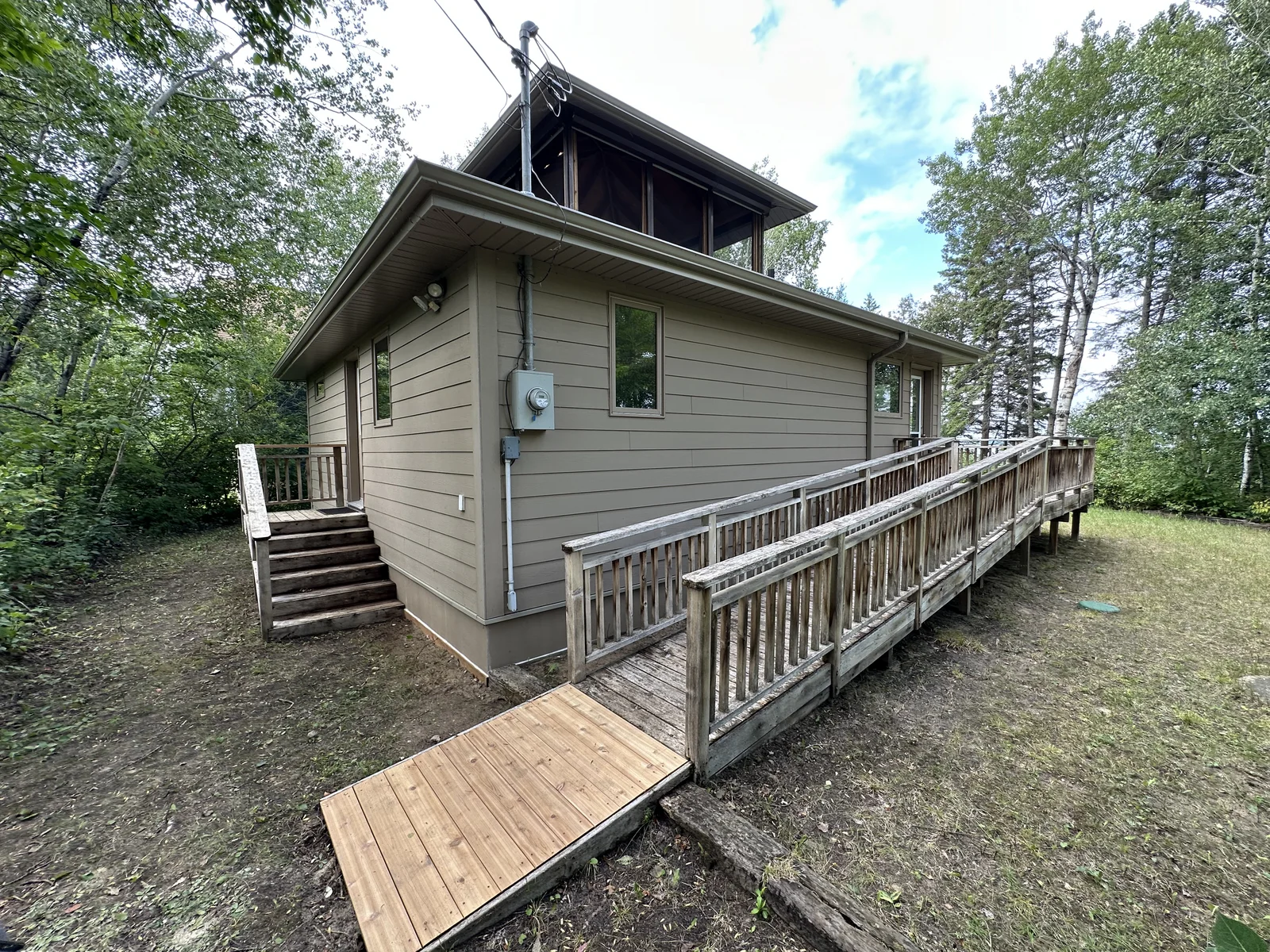 ONE OF A KIND CUSTOM BUILT LAKEFRONT COTTAGE! WALK OUT ON TO SAND BEACH!!! Showcasing gorgeous views of Elk Island, Through the Wrap Around Front Window Wall, Everything about this cottage is intentional and thought out. Starting from the top, literally, with the Indoor/ Outdoor Sunroom/ Screen Porch. Located right on top, the screened sun room Has a 360 degree view, but also has fully or partly sealing (yet simple to use) steel shutters that close off the space for use as another bedroom or living area. The main floor is flexible as well, with the large bedroom off of the living room having extra wide pocket doors in order to convert to whatever you need! Even the kitchen table folds up!! Built to modern code with 2x6 walls and Concrete footing, this property only needs a year round water source to be fully year round. Maintenance free, with Hardyboard composite siding, 200 Amp service. The shingles are newer (5 yrs) and the eavestrough and Fascia were just done last year. The property is also accessible, with a Ramp up to the Wrap Around Deck. Fully furnished and turnkey, all you need is you and your bathing suit!!